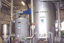 分離槽で分けられた微生物を粗成品貯留タンクに入れ、ベルトプレス式脱水機で水分80%に脱水します。脱水後、間接加熱(100℃)により水分が20%の有機質肥料となります。